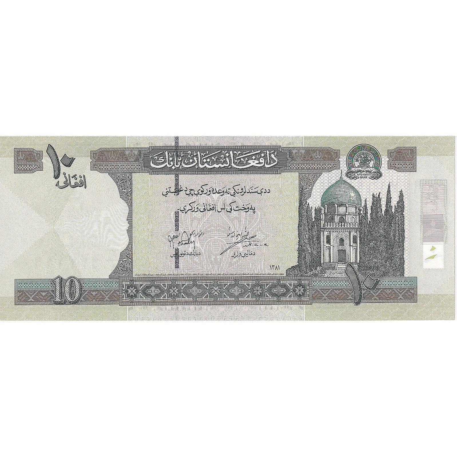 El Mausoleo de Ahmed Shah Durrashi en Kandahar está a la derecha. El Arco de la Victoria en los Jardines Paghman, cerca de Kabul, está en el centro. Impresión en verde y marrón.